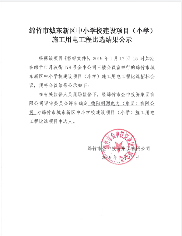 城東新區(qū)小學(xué)校建設(shè)項目施工用電工程比選結(jié)果公示