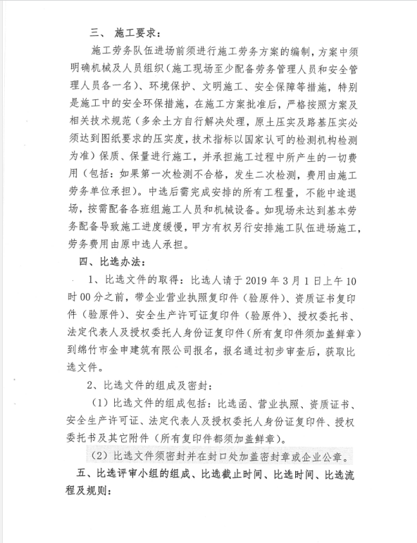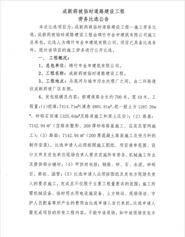 成新藥玻臨時(shí)道路建設(shè)工程勞務(wù)比選公告