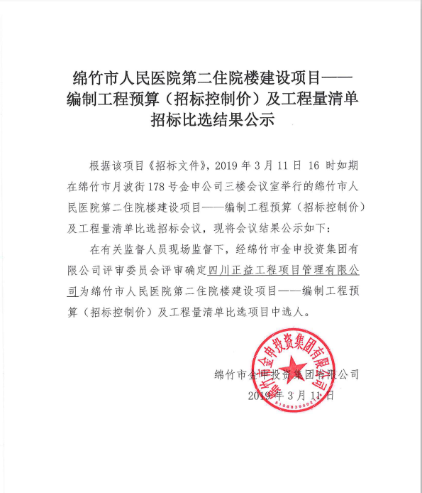 市醫(yī)院第二住院樓編制工程預(yù)算等中介機(jī)構(gòu)比選結(jié)果公示