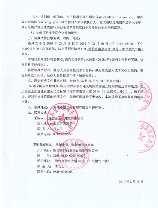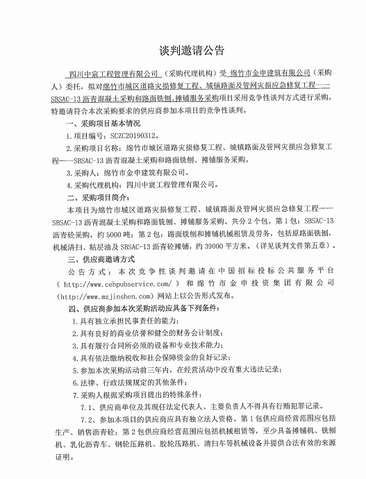 關于綿竹城區(qū)災損修復工程相關采購項目的談判邀請公告