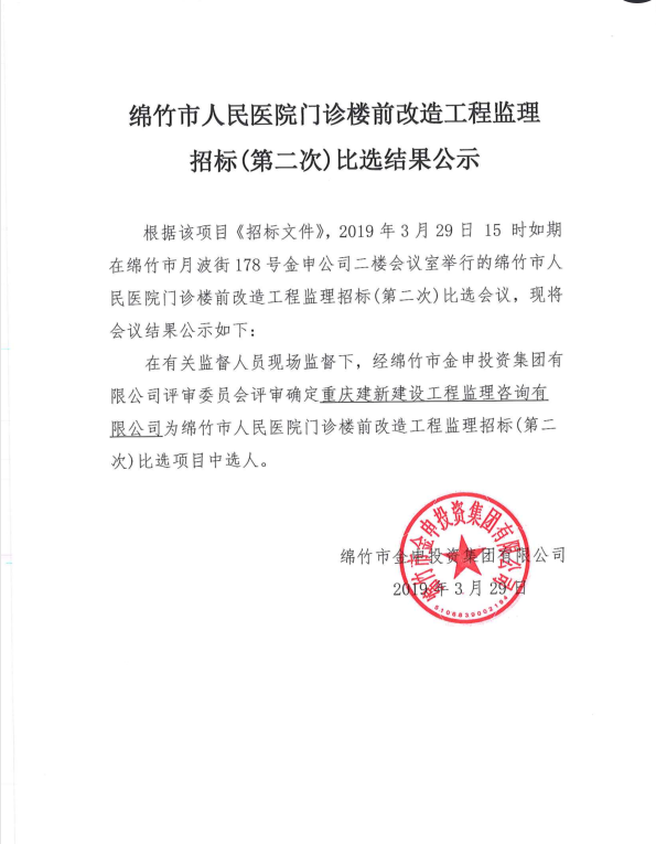 市人民醫(yī)院廣場(chǎng)改造工程監(jiān)理(第二次)比選結(jié)果公示