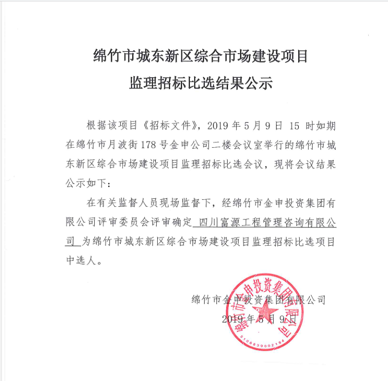 市城東新區(qū)綜合市場建設項目監(jiān)理招標比選結果公示