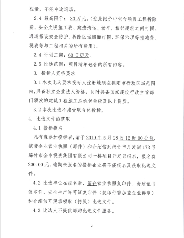 市大南路285號7號樓等7棟房屋拆除工程項目施工比選公告