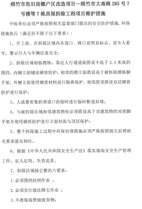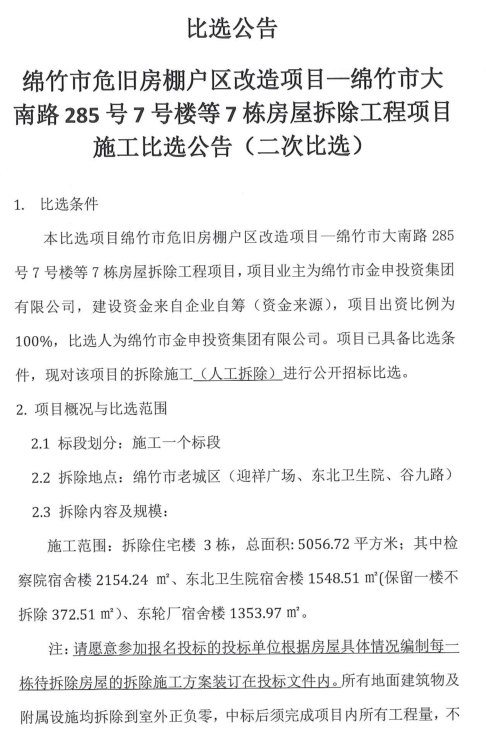 市大南路285號(hào)7號(hào)樓等7棟房屋拆除工程施工比選公告