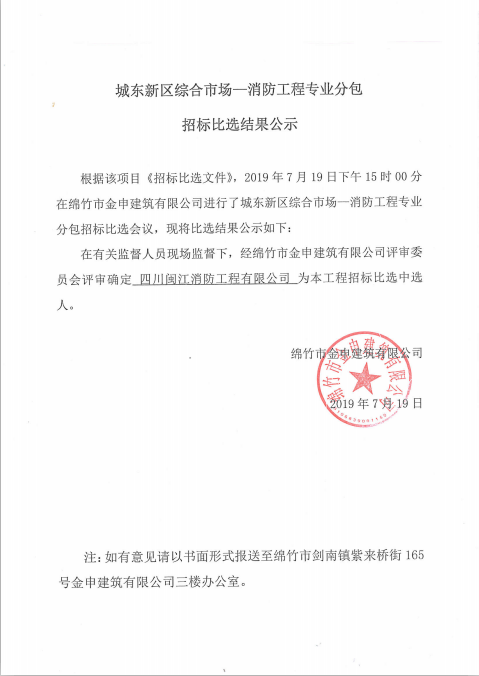 城東市場(chǎng)—消防工程專業(yè)分包比選結(jié)果公示