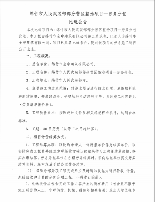 市武裝部部分營區(qū)整治項(xiàng)目—?jiǎng)趧?wù)分包比選公告