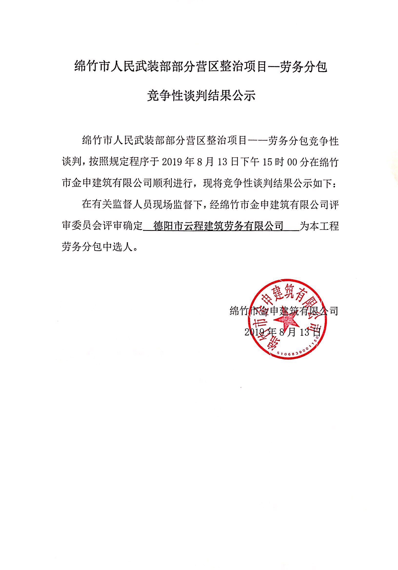 市武裝部部分營區(qū)整治項目—勞務(wù)分包競爭性談判結(jié)果公示