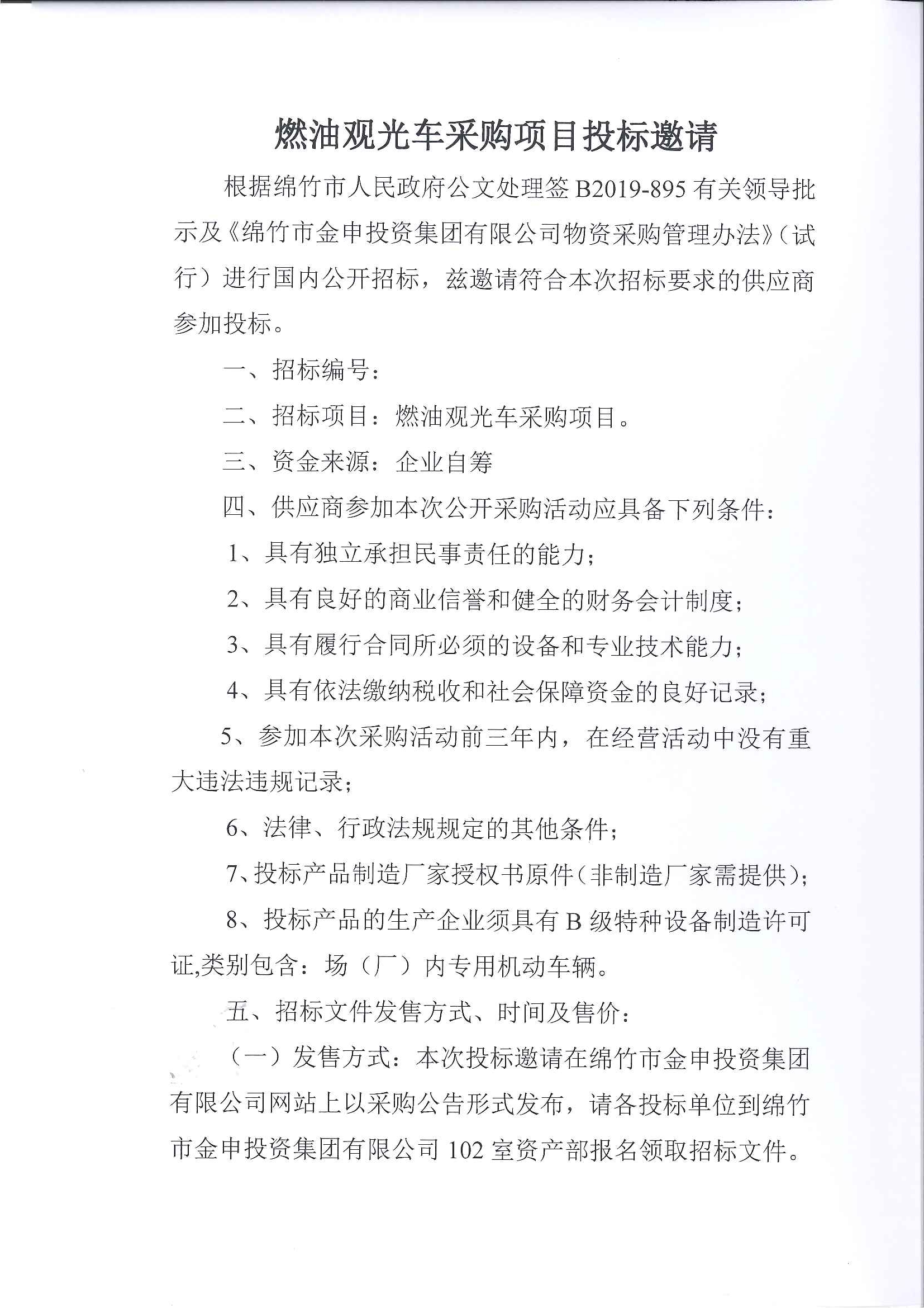 燃油觀光車采購項(xiàng)目招標(biāo)公告