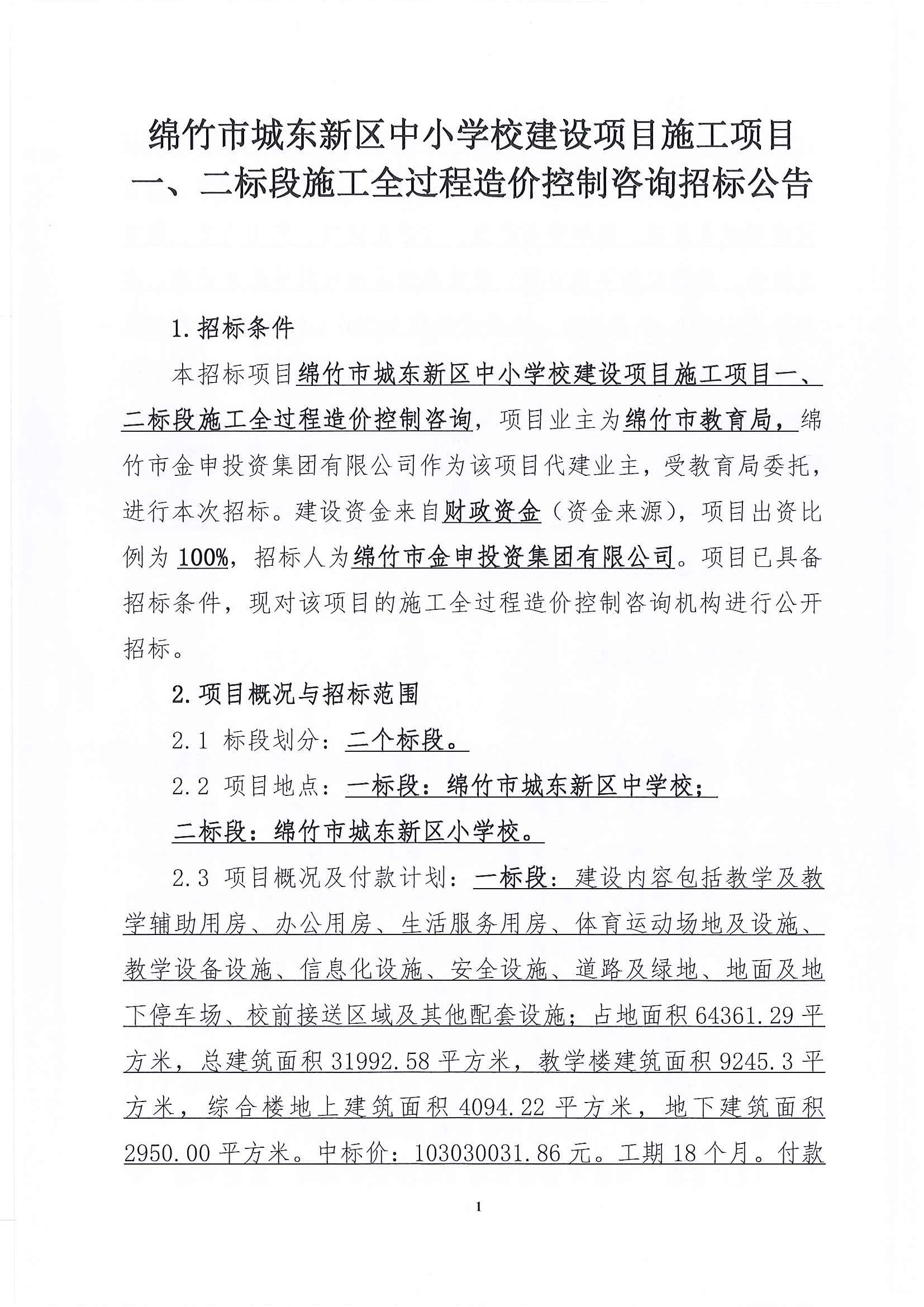 市城東中小學(xué)校建設(shè)項(xiàng)目一、二標(biāo)段施工造價(jià)控制咨詢公告