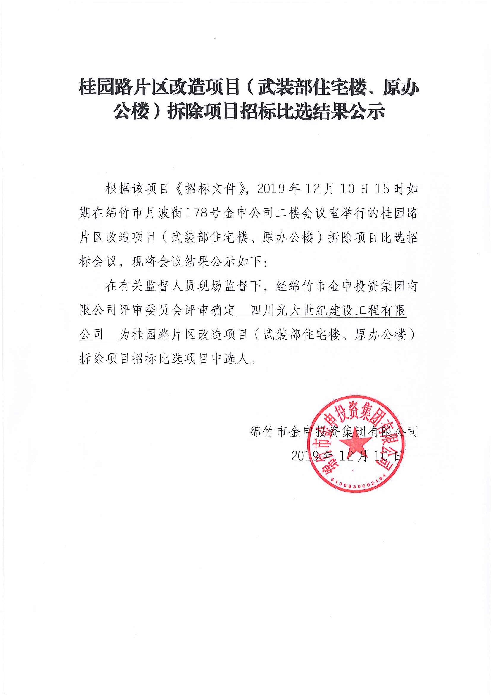 桂園路片區(qū)改造拆除項(xiàng)目招標(biāo)比選結(jié)果公示