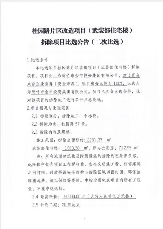 桂園路片區(qū)改造項(xiàng)目拆除第二次比選公告