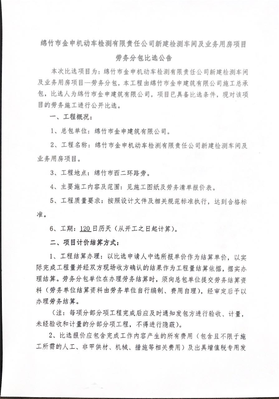 新建檢測(cè)車(chē)間及業(yè)務(wù)用房項(xiàng)目勞務(wù)分包比選公告