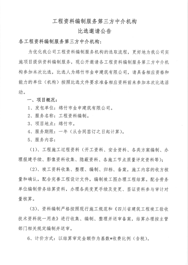 工程資料編制服務(wù)第三方中介機(jī)構(gòu)比選邀請(qǐng)公告