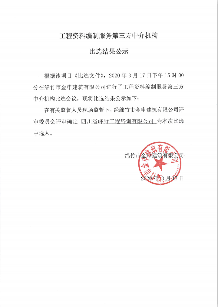 工程資料編制服務(wù)第三方中介機(jī)構(gòu)比選結(jié)果公示