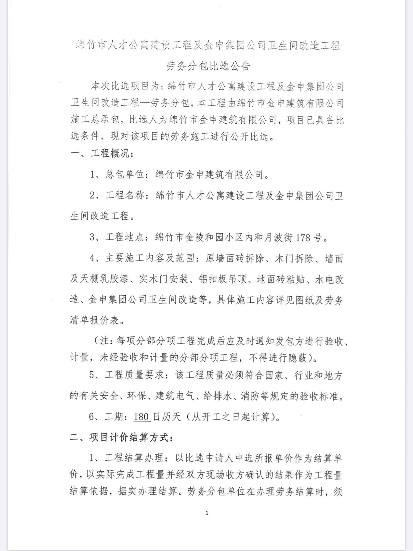 市人才公寓建設(shè)及金申衛(wèi)生間改造工程勞務(wù)分包比選公告
