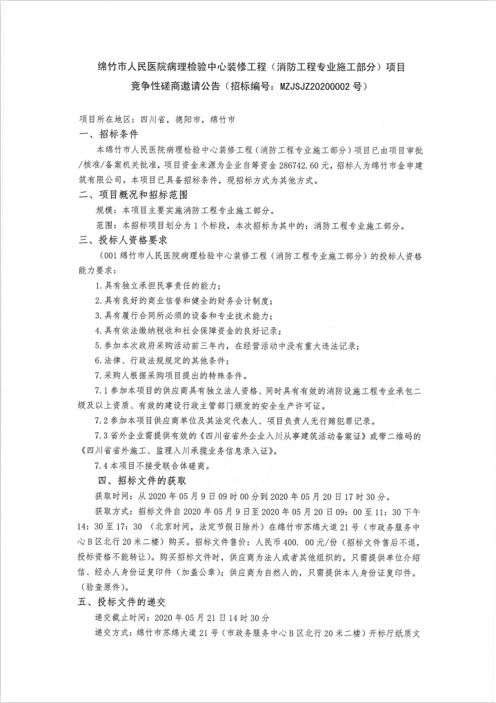 人民醫(yī)院病理檢驗(yàn)中心(消防工程)項(xiàng)目競(jìng)爭(zhēng)性磋商邀請(qǐng)公告