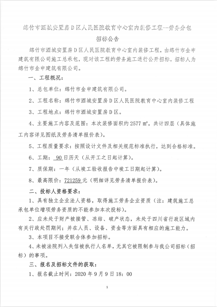 人民醫(yī)院教育中心室內(nèi)裝修工程-勞務(wù)分包招標(biāo)公告