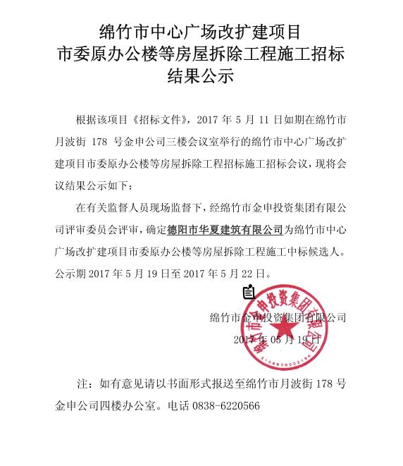 市委原辦公樓等房屋拆除工程施工招標(biāo)結(jié)果公示