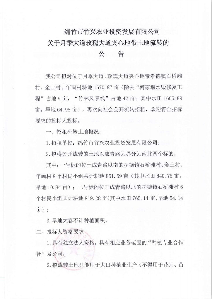 關(guān)于月季大道玫瑰大道夾心地帶土地流轉(zhuǎn)的公告
