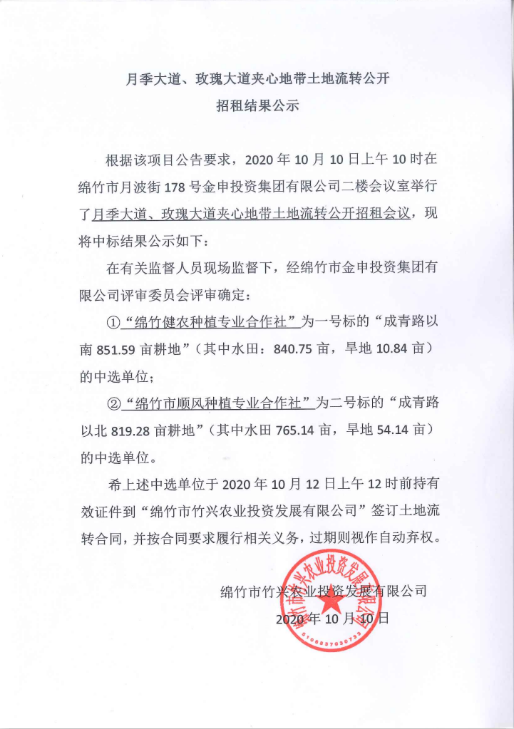 月季大道、玫瑰大道夾心地帶土地流轉(zhuǎn)公開(kāi)招租結(jié)果公示