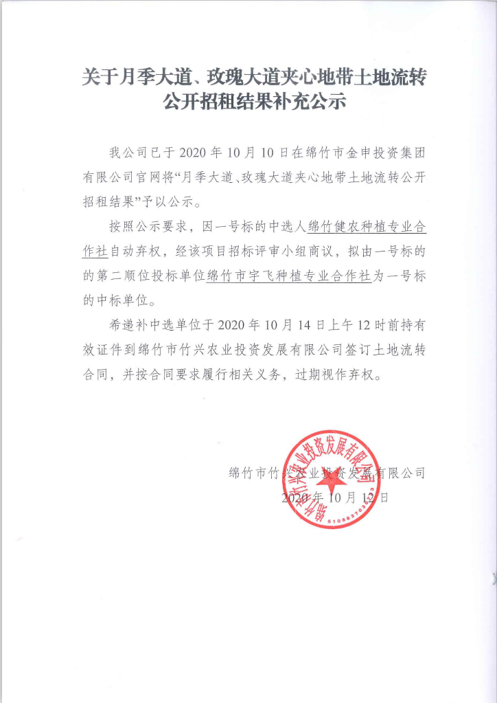 月季、玫瑰大道夾心地帶土地流轉(zhuǎn)公開(kāi)招租結(jié)果補(bǔ)充公示