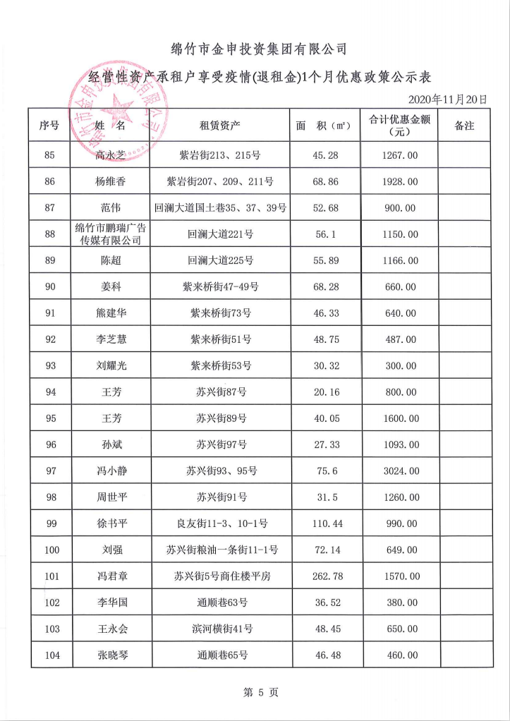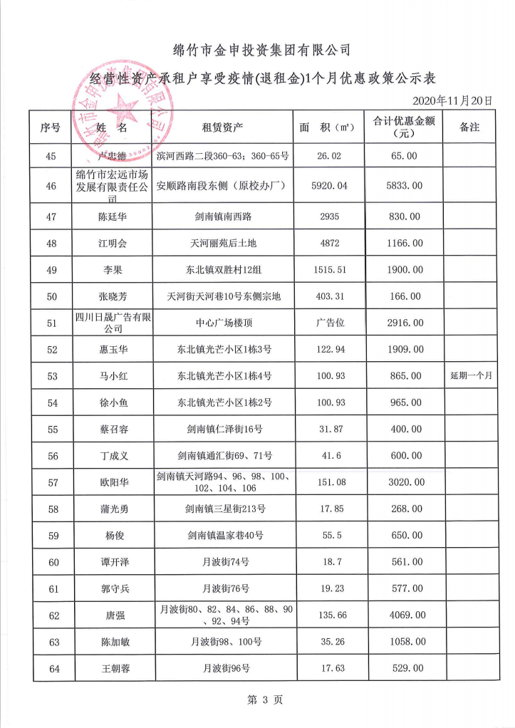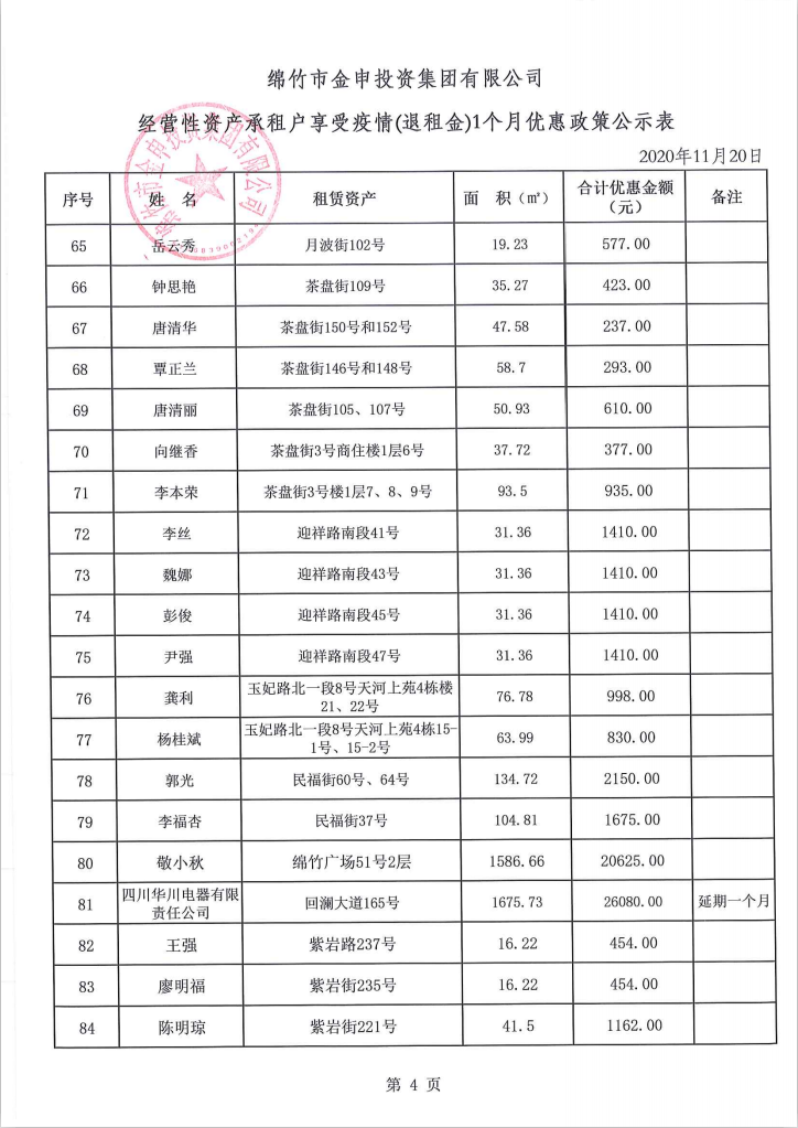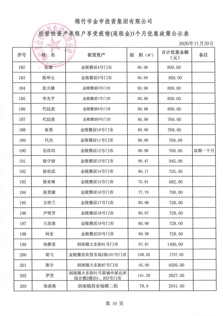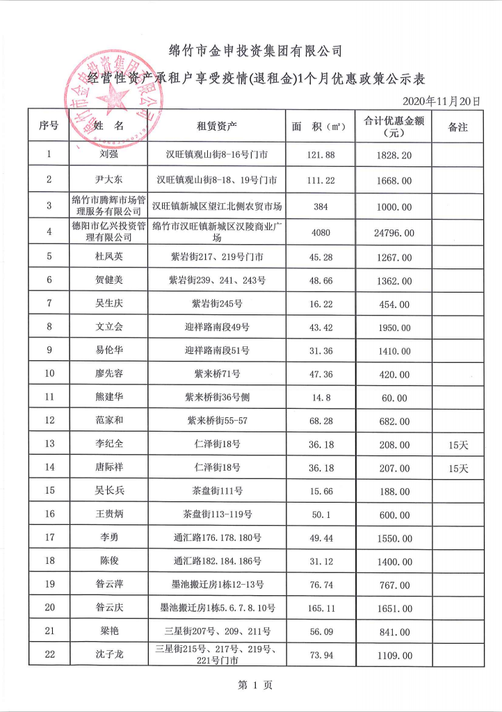 經(jīng)營性資產(chǎn)承租戶享受疫情(退租金)一個月優(yōu)惠政策公示