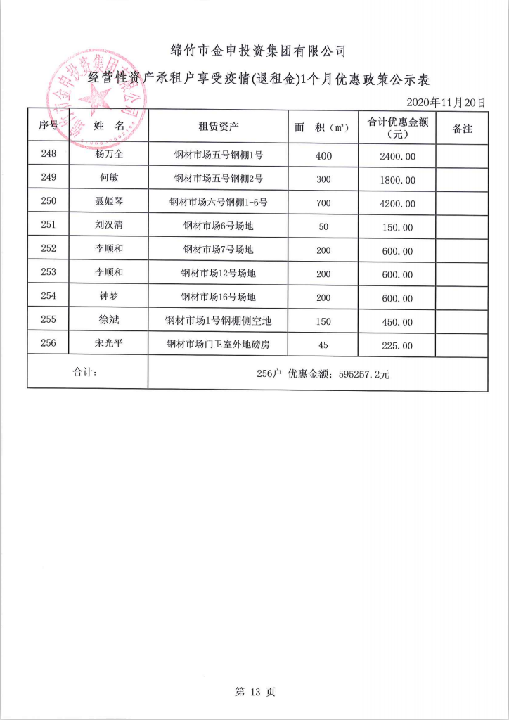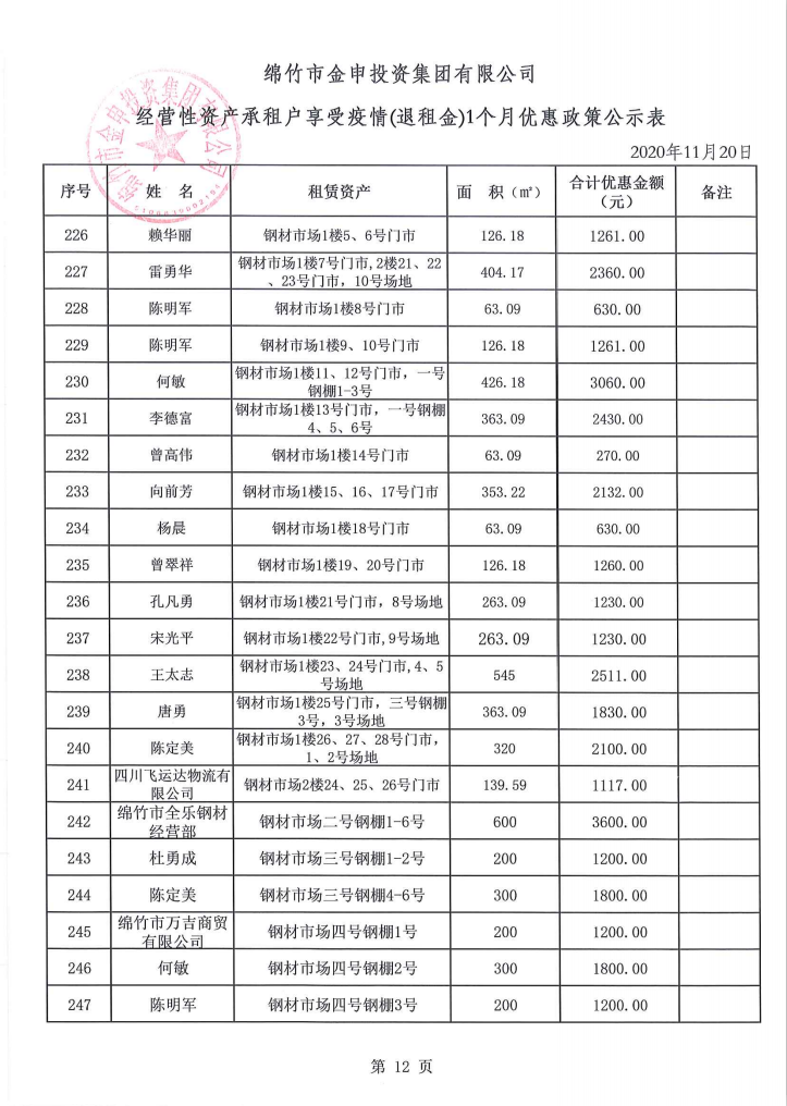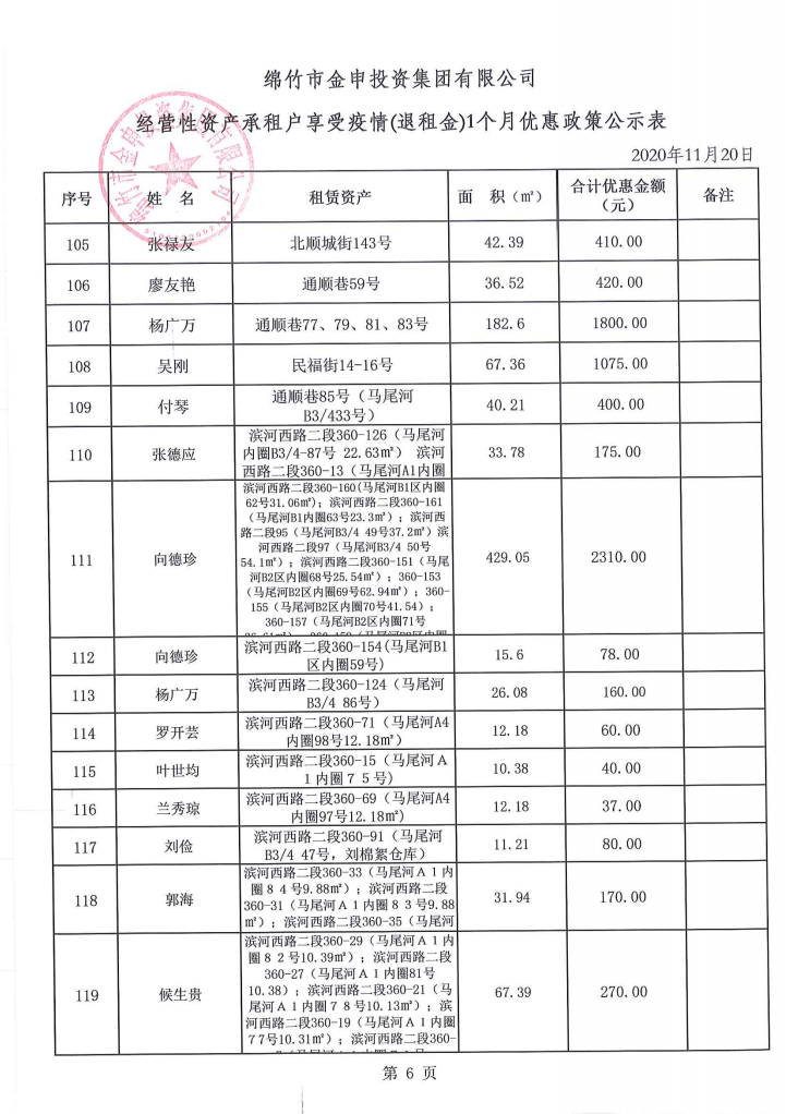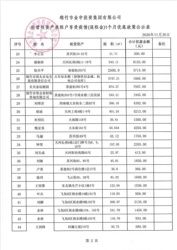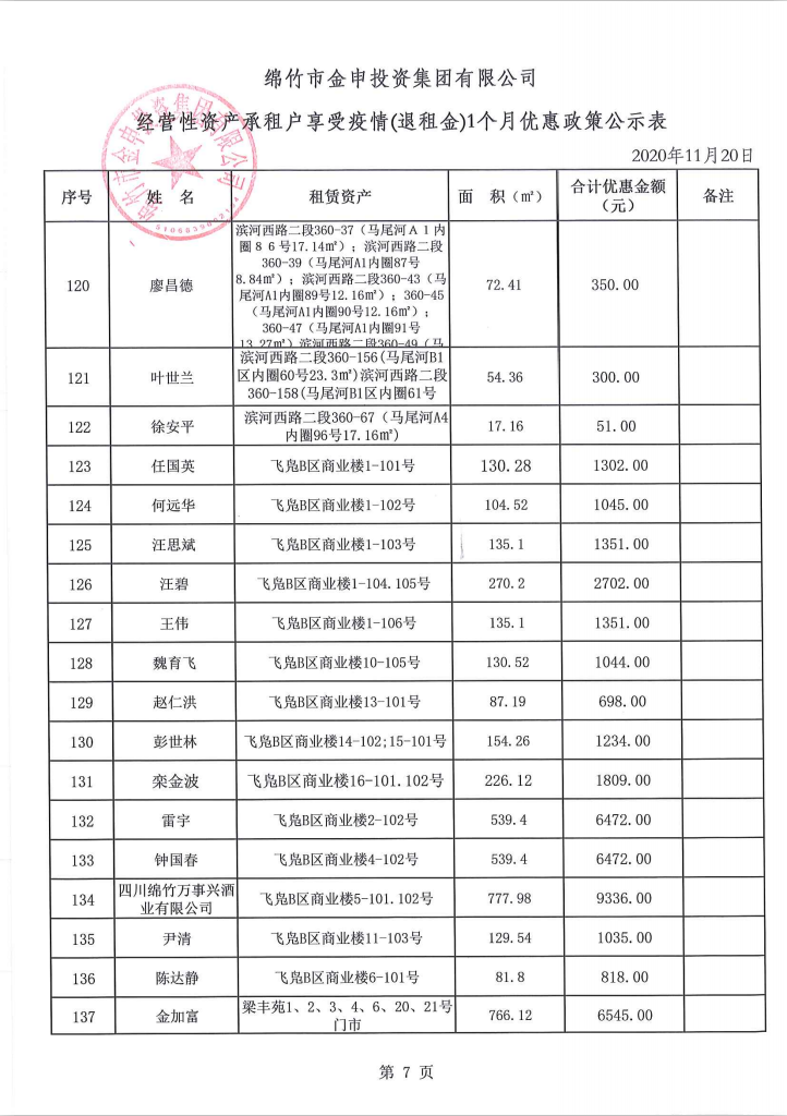 經(jīng)營性資產(chǎn)承租戶享受疫情(退租金)一個月優(yōu)惠政策公示