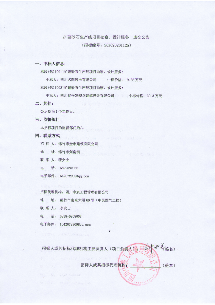 擴(kuò)建砂石生產(chǎn)線項(xiàng)目勘察、設(shè)計(jì)服務(wù)成交公告