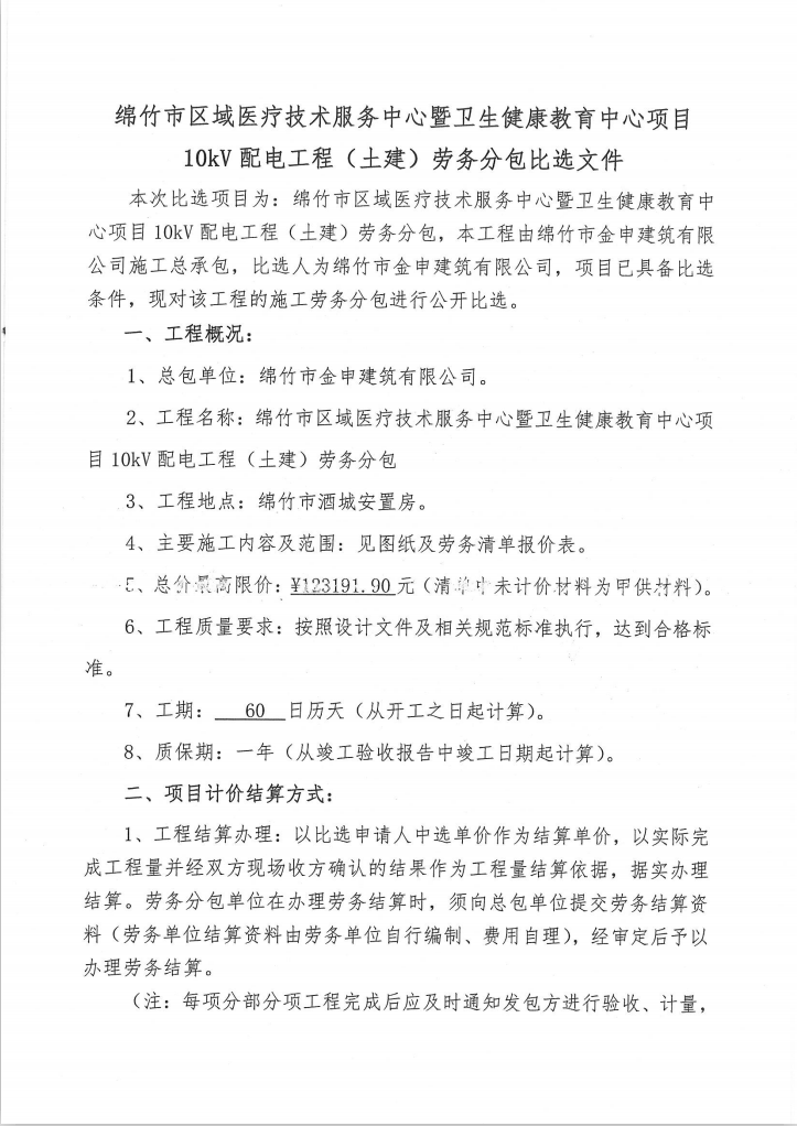 衛(wèi)生健康教育中心項目10kv配電工程(土建)勞務分包比選公告