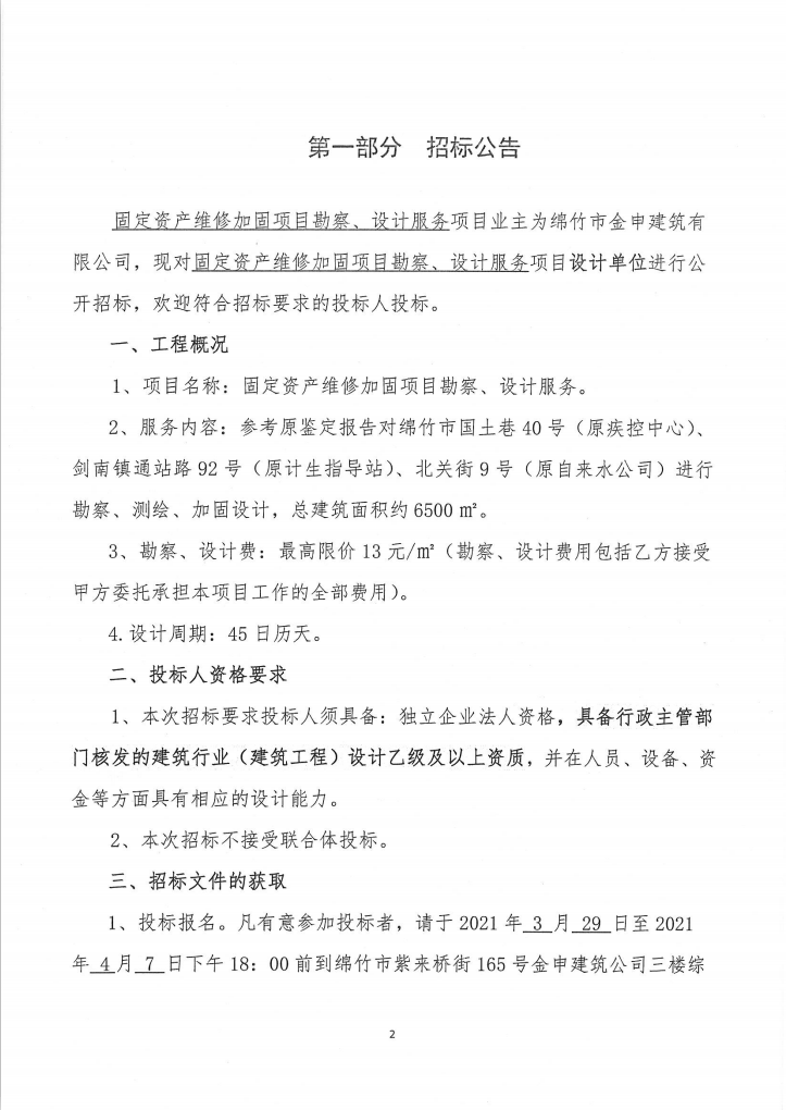 固定資產(chǎn)維修加固項目勘察、設(shè)計服務(wù)招標(biāo)公告