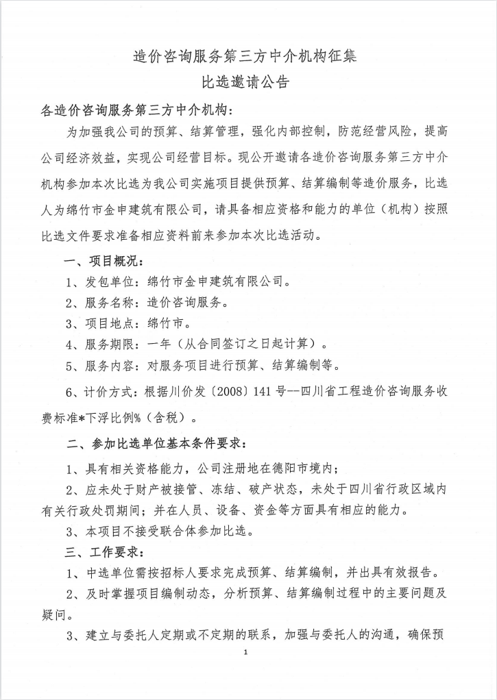 造價(jià)咨詢服務(wù)第三方中介機(jī)構(gòu)征集比選邀請(qǐng)公告