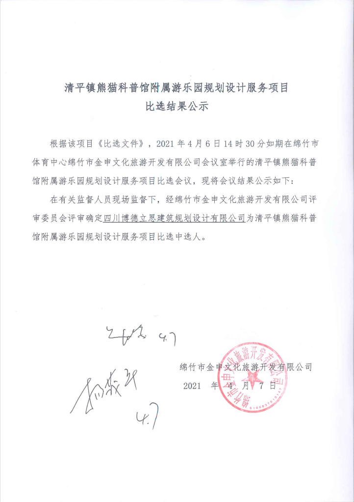 清平熊貓科普館附屬游樂園規(guī)劃設(shè)計服務(wù)項目比選結(jié)果公示