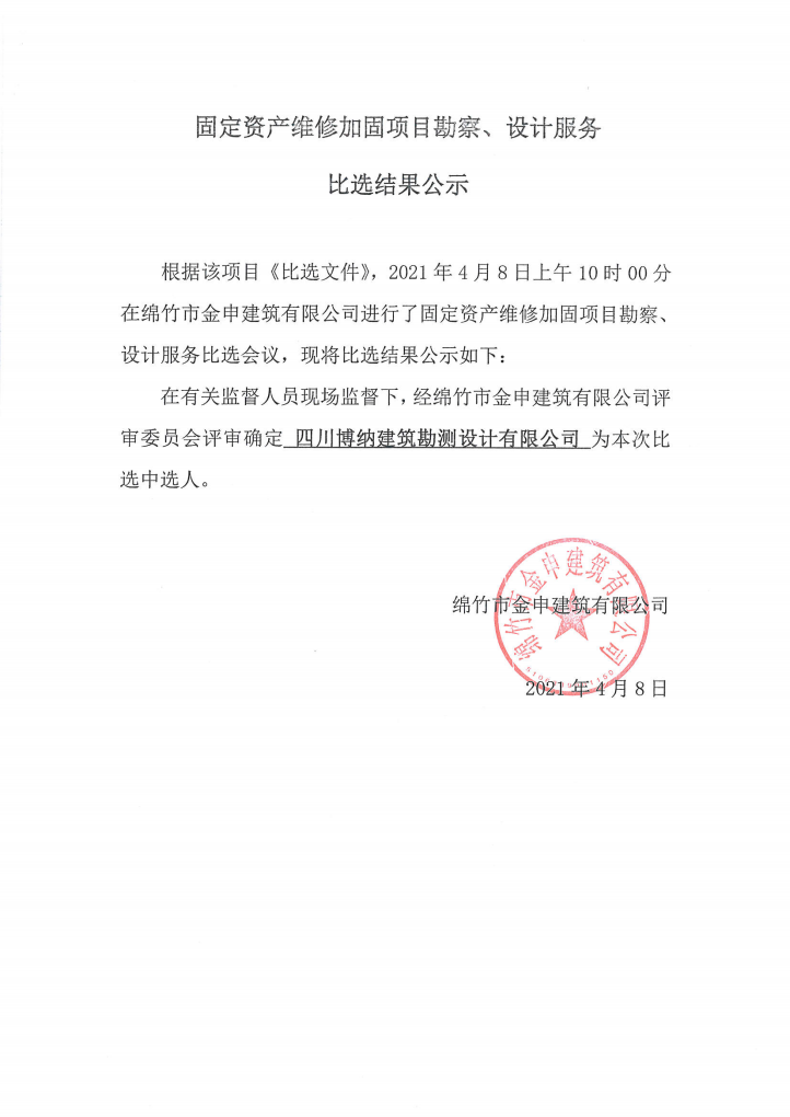 固定資產(chǎn)維修加固項目勘察、設(shè)計服務(wù)比選結(jié)果公示