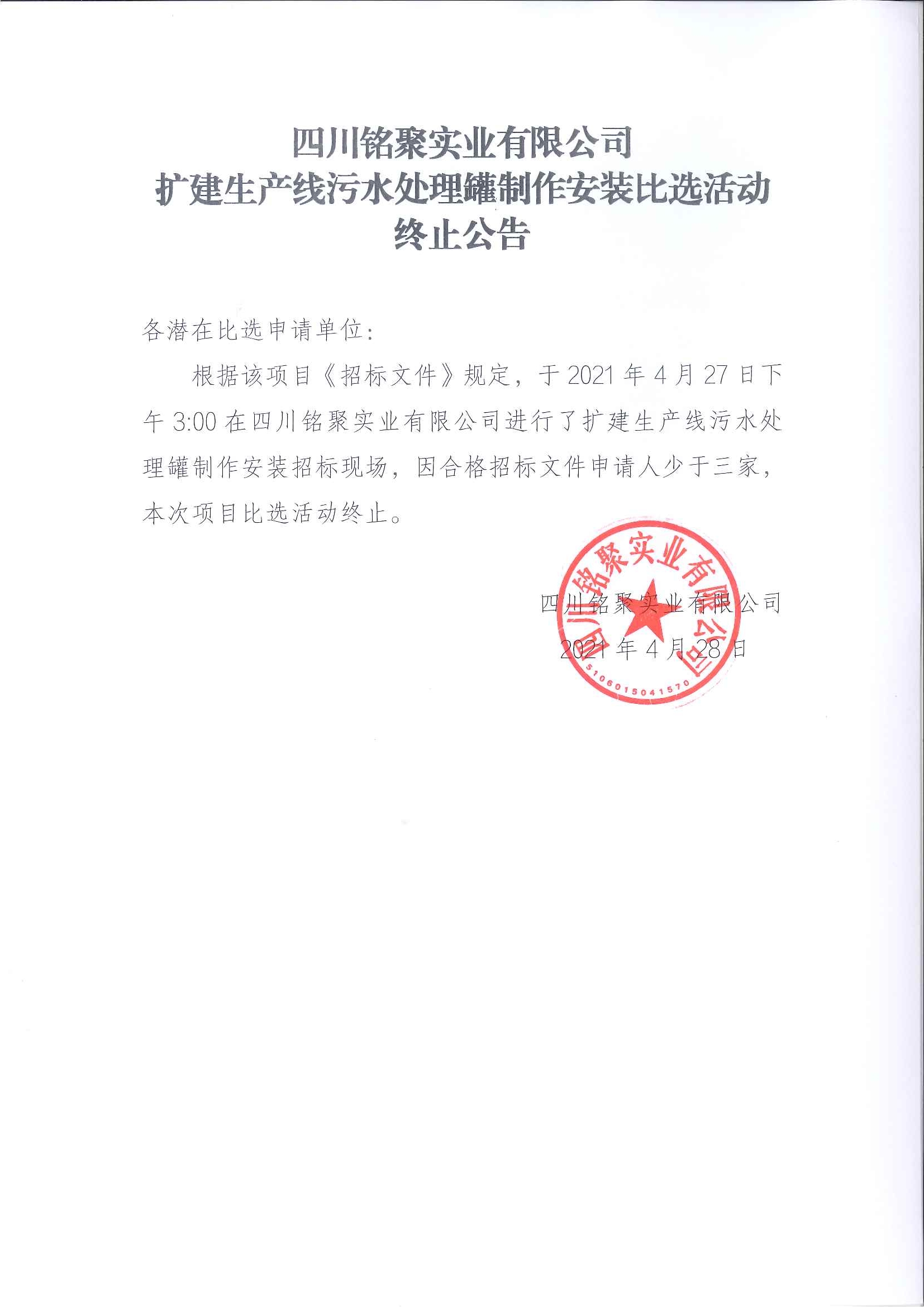 擴(kuò)建生產(chǎn)線污水處理罐制作安裝比選活動(dòng)終止公告