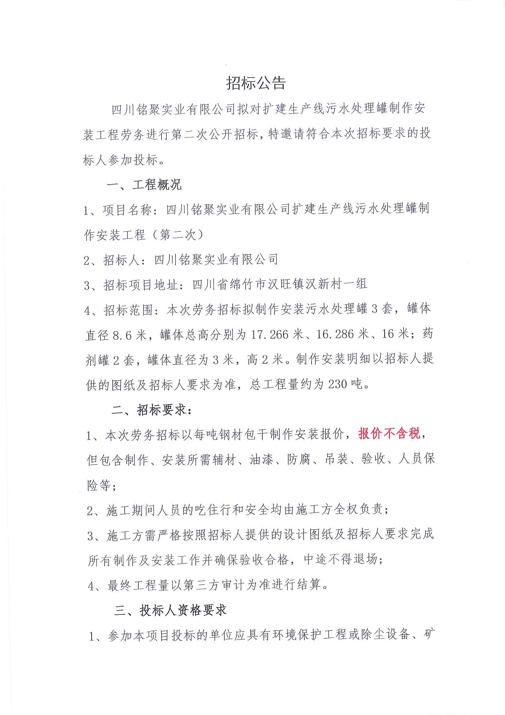 擴(kuò)建生產(chǎn)線污水處理罐制作安裝工程二次招標(biāo)公告