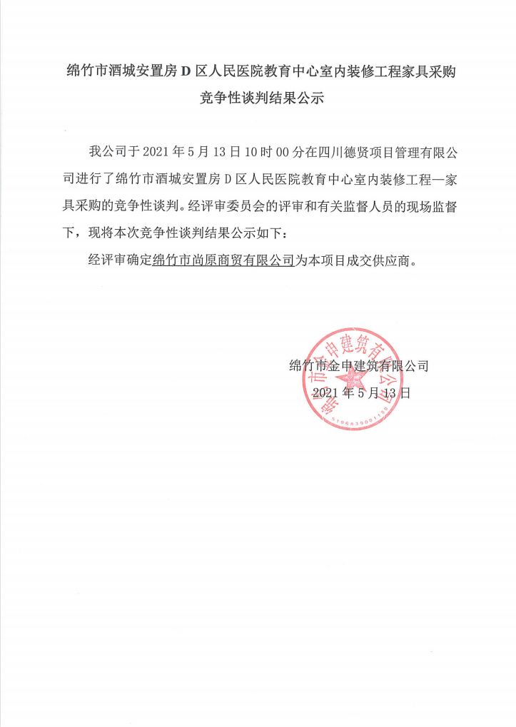 人民醫(yī)院教育中心室內(nèi)裝修工程—家具采購談判結(jié)果公示