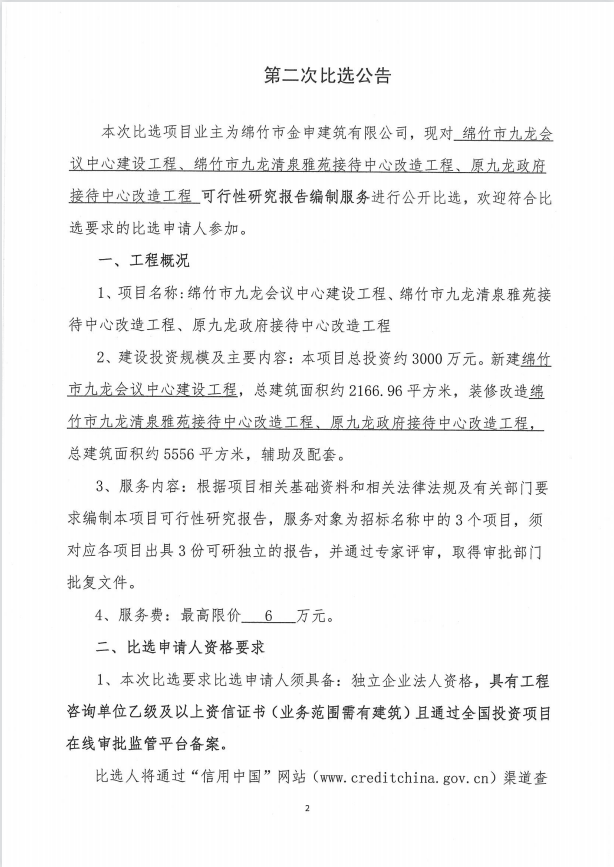 九龍系列工程可行性研究報(bào)告編制服務(wù)二次比選公告