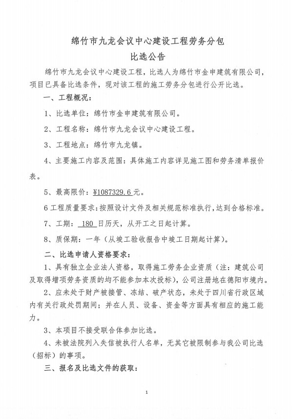綿竹市九龍會(huì)議中心建設(shè)工程勞務(wù)分包比選公告
