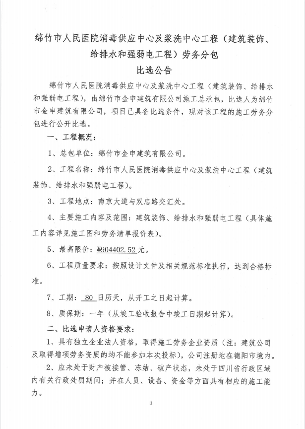 市人民醫(yī)院消毒供應(yīng)中心及漿洗中心工程勞務(wù)分包比選公告