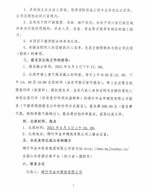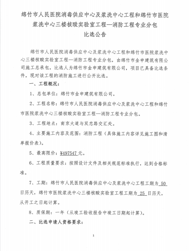 綿竹市人民醫(yī)院部分工程—消防工程專業(yè)分包比選公告