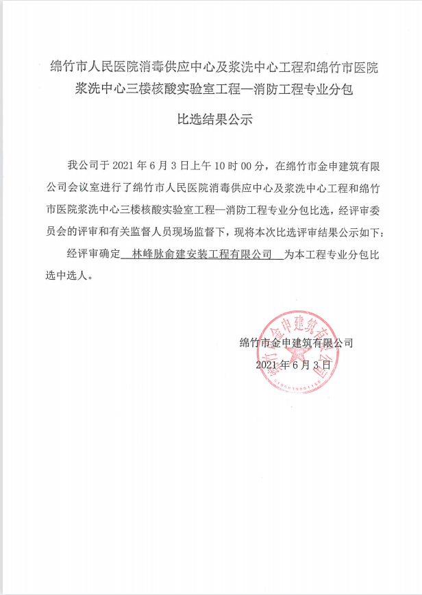 市醫(yī)院消毒供應(yīng)、漿洗及核酸實驗室消防工程比選結(jié)果公示