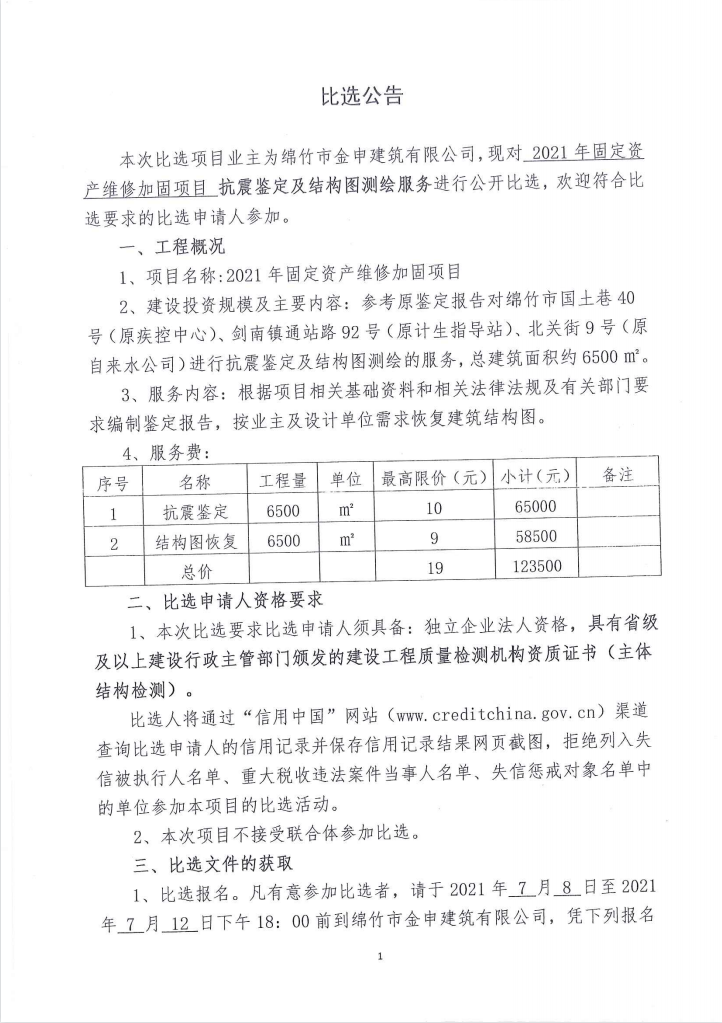 固定資產(chǎn)維護(hù)加固項(xiàng)目抗震鑒定及結(jié)構(gòu)圖測(cè)繪服務(wù)比選公告