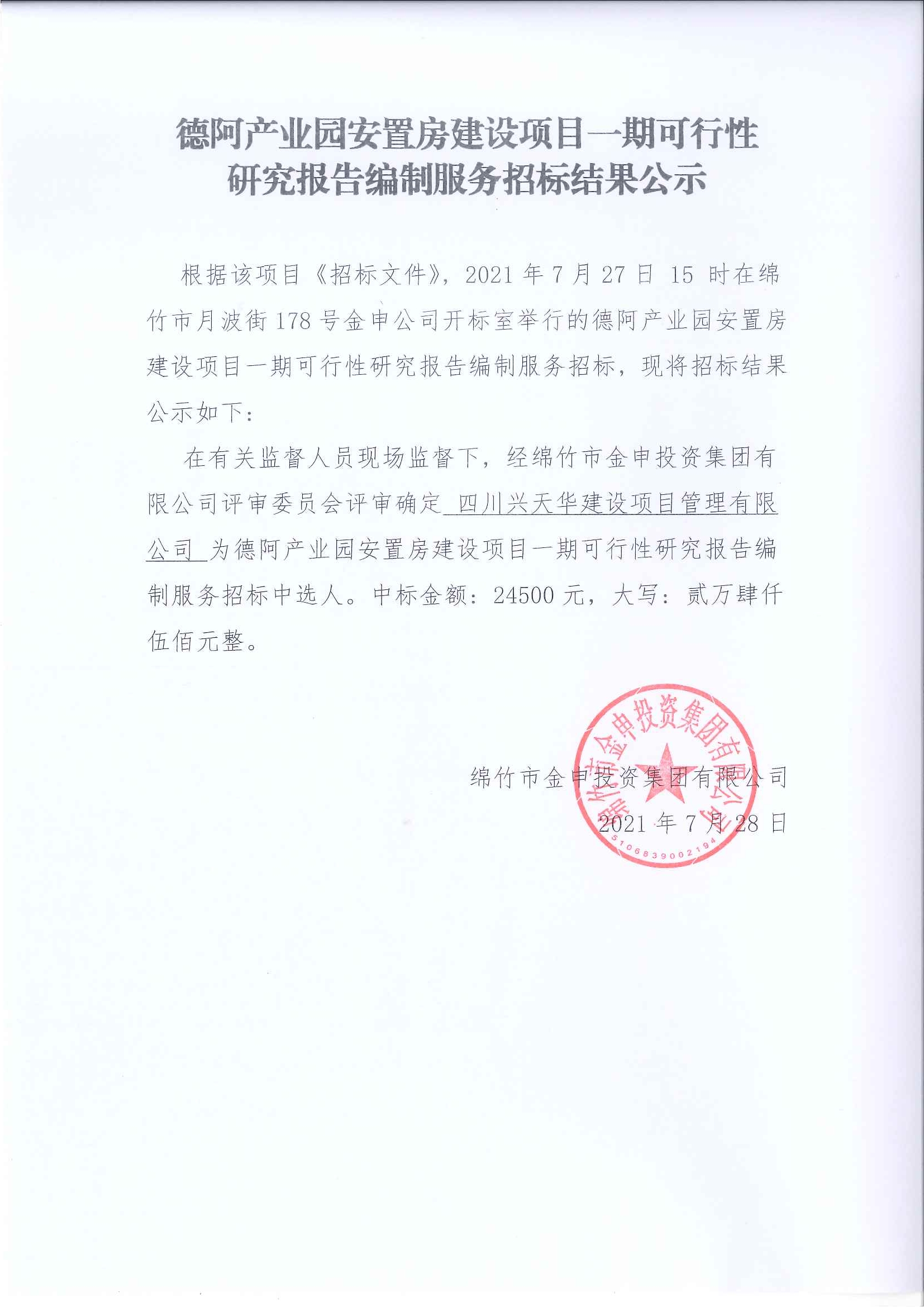 德阿產(chǎn)業(yè)園安置房項目一期可研報告編制服務招標結果公示