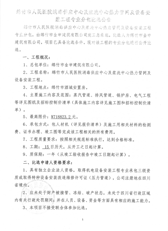 市醫(yī)院消供、漿洗中心熱力網(wǎng)管及設(shè)備安裝工程比選公告