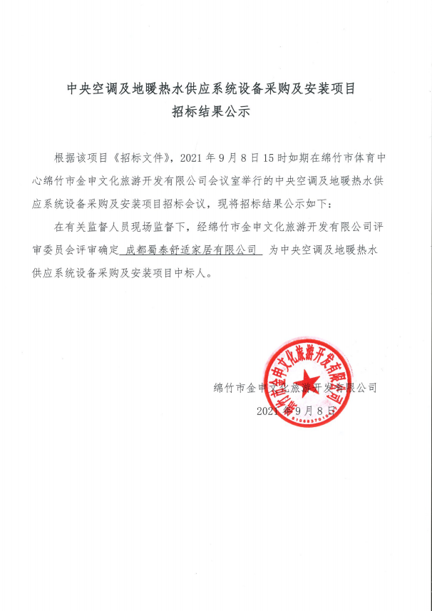 空調(diào)及地暖熱水供應(yīng)系統(tǒng)設(shè)備采購(gòu)及安裝項(xiàng)目招標(biāo)結(jié)果公示