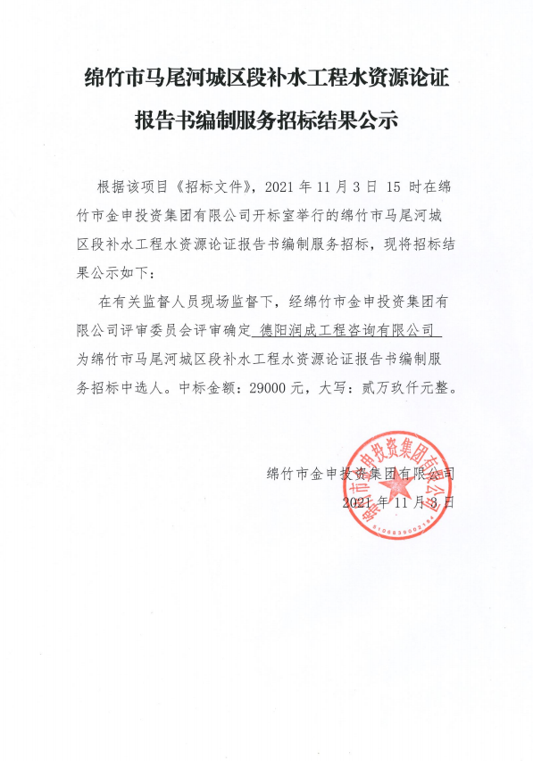 馬尾河城區(qū)段補(bǔ)水工程水資源論證書編制服務(wù)招標(biāo)結(jié)果公示