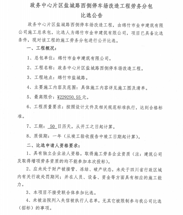 政務(wù)中心片區(qū)鹽城路西側(cè)停車場改造工程比選公告
