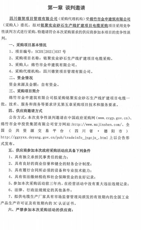 銘聚實業(yè)砂石生產(chǎn)線擴建項目電纜采購公告