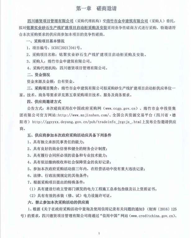 銘聚砂石生產(chǎn)線擴建項目啟動柜采購及安裝招標公告