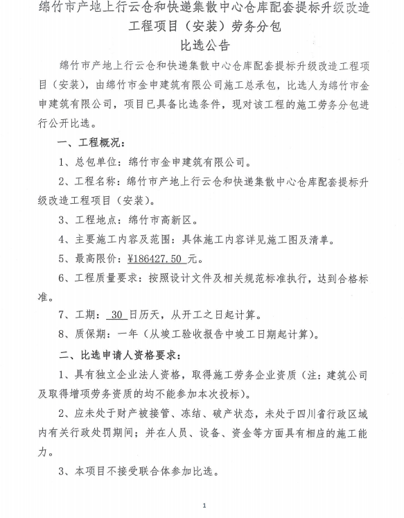 倉(cāng)庫(kù)配套提標(biāo)升級(jí)改造工程項(xiàng)目(安裝)勞務(wù)分包比選公告